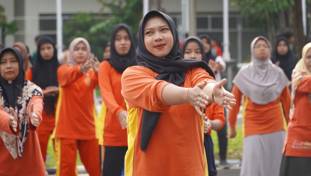 Suasana senam bersama “Jumat Sehat” keluarga ITS PKU Muhammadiyah Solo,, Jumat (23/2/2024). (Foto: Humas ITS PKU Muh).