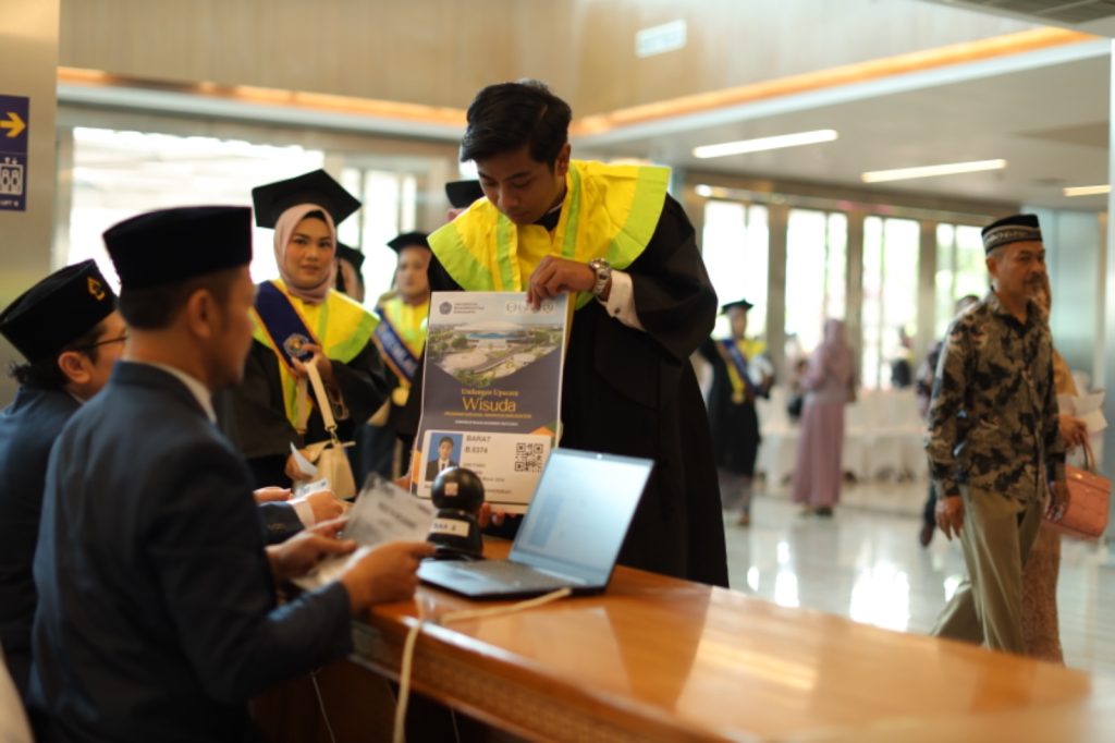 Salah seorang peserta wisuda tengah registrasi untuk mengikuti wisuda, Jumat (8/3/2024). (Foto: Humas UMS).