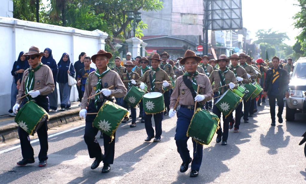 Pasukan drum band Hizbul Wathan Kota Solo ikut memeriahkan acara jalan sehat. [Istimewa].