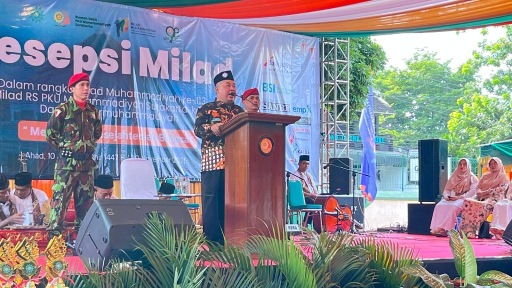 SOLO, MUHAMMADIYAHSOLO.COM-Resepsi Milad ke-113 Muhammadiyah dan Milad ke-98 Rumah Sakit PKU Muhammadiyah Surakarta berlangsung meriah di Taman Parkir RS PKU Muhammadiyah Surakarta, Minggu (30/11/2025). Kegiatan yang diikuti sekitar 4.000 anggota jemaah itu menghadirkan Ketua Lembaga Pengembangan Cabang Ranting dan Pembinaan Masjid (LPCR-PM) PP Muhammadiyah, Muhammad Jamaludin Ahmad, sebagai pembicara utama.