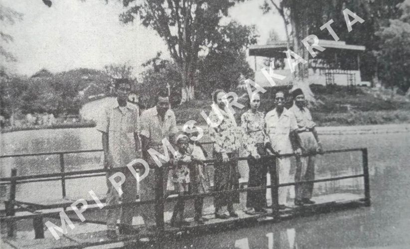 Soerono bersama awak majalah “Adil” saat piknik ke segaran Taman Sriwedari. [Istimewa].