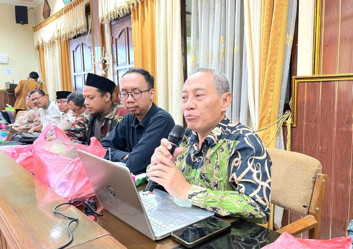 Pengurus Pimpinan Daerah Muhammadiyah (PDM) Kota Solo, Azhari (pegang mik), saat menyampaikan pendapatnya pada Focus Group Discussion (FGD) yang diselenggarakan majalah Langkah Baru, belum lama ini. [Dok. MPI Solo].