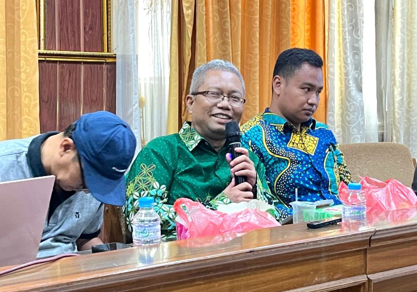 Badan Pengurus Lazismu PDM Kota Solo, Muladi Wibowo (pegang mik) saat menyampaikan pendapatnya ada forum FGD yang diselenggarakan majalah Langkah Baru, belum lama ini. [Dok. MPI Kota Solo.].