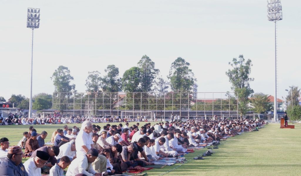 Ribuan umat Islam mengikuti salat Idulfitri di Lapangan Kottabarat, Jumat (20/3/2026). [Istimewa].
